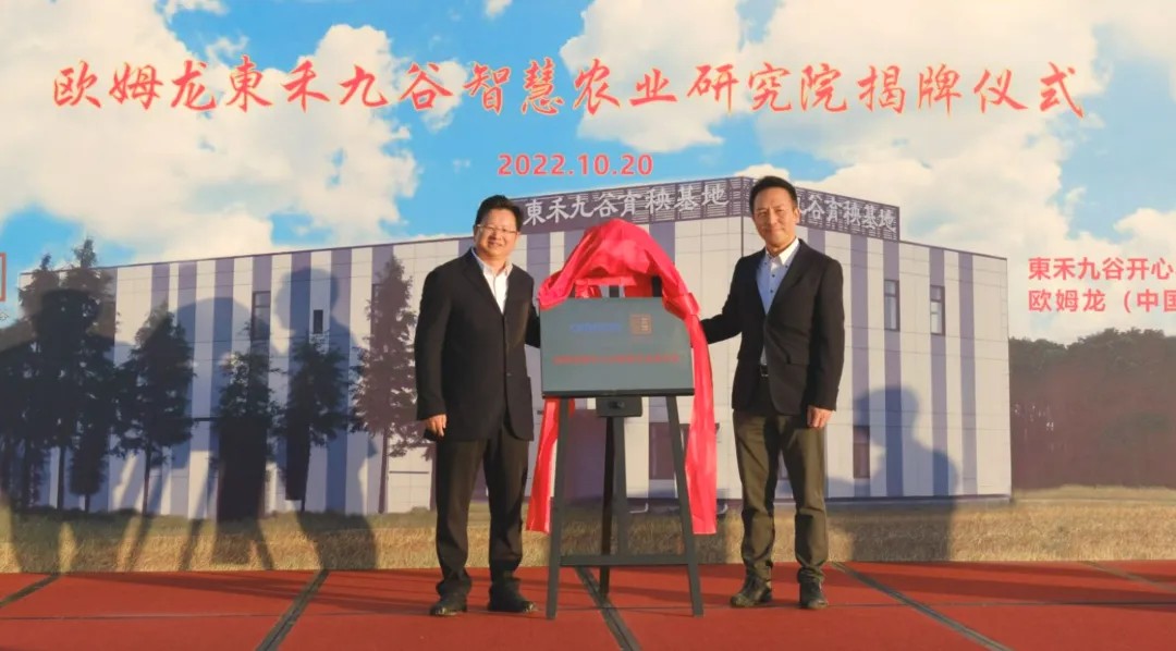 “欧姆龙東禾九谷智慧农业研究院”揭牌仪式在東禾九谷稻米文化园广场内举行。