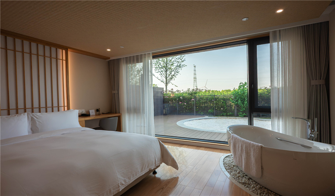 日式庭院风格套房,每一处都是贴心专注的设计和投入,主打营造温馨甜蜜难忘的亲子之旅。总面积达92平方米的尊享庭院套房让您独享一楼庭院。